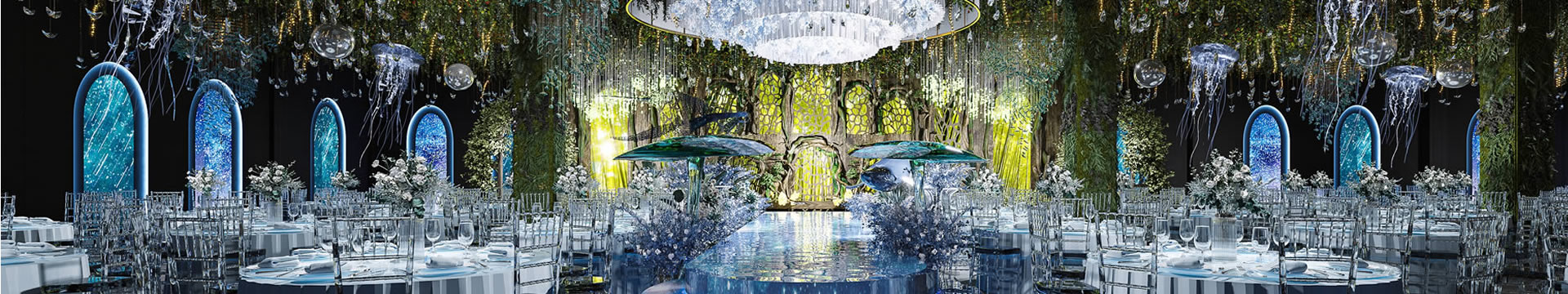 色彩和主题:为婚礼堂设定一个主题和色彩方案,这样可以使整个空间更加统一和协调。例如,可以选择浪漫的粉色或蓝色,或者传统的红色或金色。